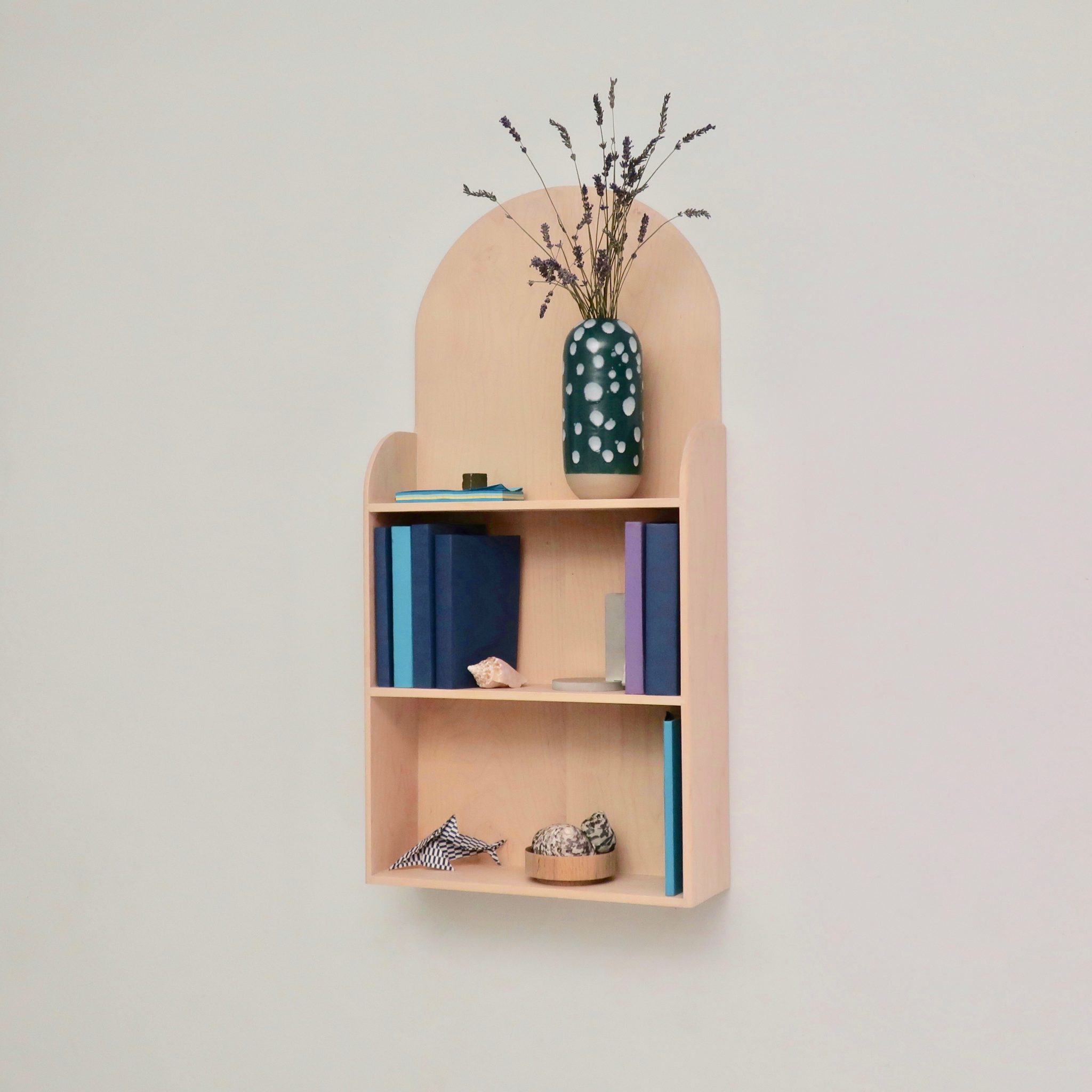 Lightweight bookshelves are easily hung from keyholes hidden on their back.